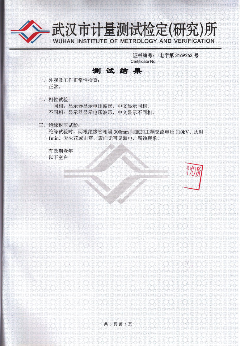 適合安規(guī) GB13398-92、GB311.1-311.6-8、3DL408-91標準和國家新頒布電力行業(yè)標準《帶電作業(yè)用1kV~35kV便攜式核相器通用技術(shù)條件DL/T971-2005》要求
