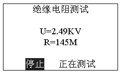 此時按確認鍵(ENTER)進入“正在測試”,顯示測試電壓和電阻值。